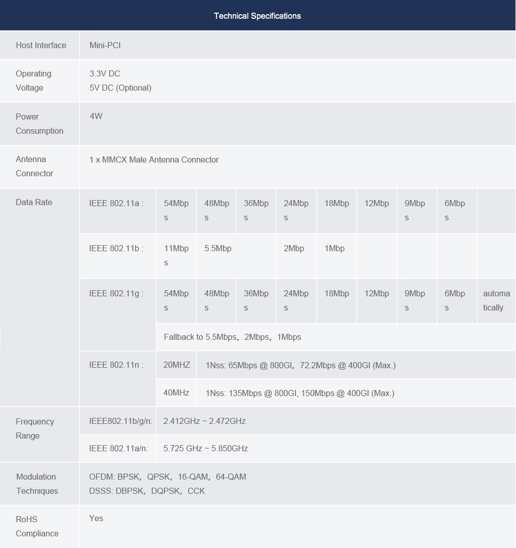 NiCon3210-PCI 是一款由锐凌微南京电子科技有限公司出品的双频高功率mini-PCI网卡,支持标准IEEE802.11a/b/g/n,物理层速率最高可达150Mbps。这张网卡将无线功能添加到您的设备中,它提供了更高的效率的本地网络文件传输,互联网浏览和流媒体等日常活动。